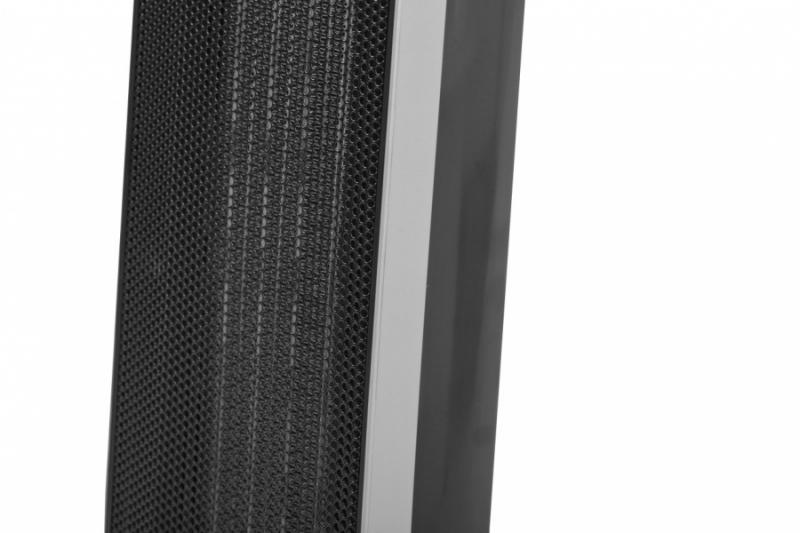 Keraamiline küttekeha. Pöörlev. Kaks võimsusastet: 1200W/2000W. Temperatuuri valik 10 kuni 49°C. Kaughuhtimispult. Saab kasutada ka ventilaatorina. Termostaat. Ülekuumenemiskaitse. Köetav ala ca. 20 m2. Mõõdud (L x K x S): 230 x 772 x 220 mm. Pinge: 230 V/50 Hz.