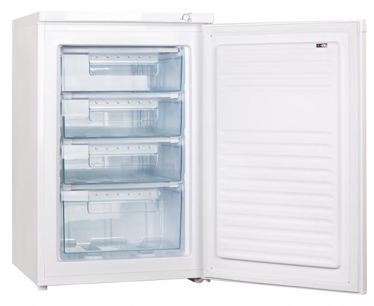 Mõõtmed (K x L x S): 85 x 55 x 58 cm,  Energiaklass: A+, Maht: 100 liitrit, Tüüp: Vertikaalne, Külmutusvõimsus: 4 kg / 24h, Autonoomia voolukatkestusel: 6 h, Ukse avanemissuund vahetatav, 4 läbipaistvat sahtlit, kaal 34 kg.