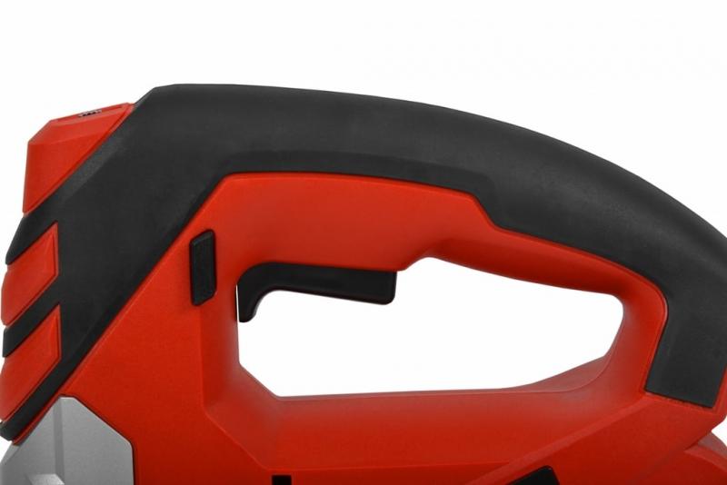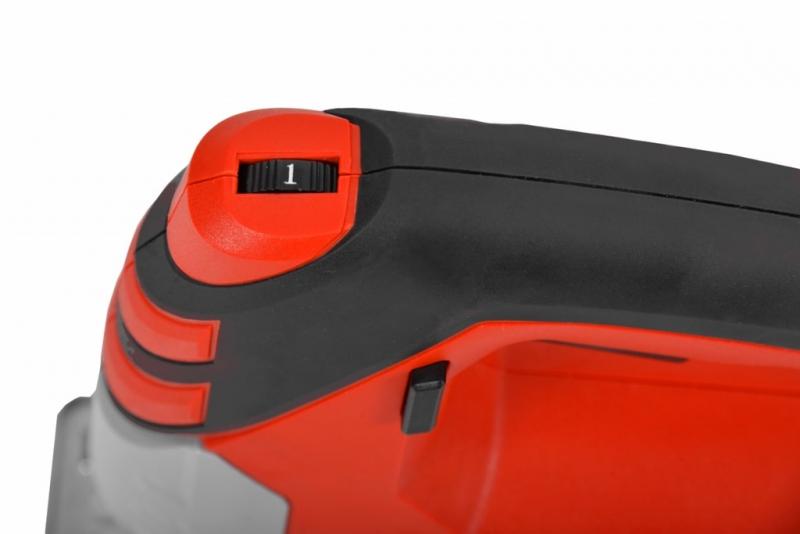 Juhtmeklamber. Alustald nurgalõigete tegemiseks 15°, 30° ja 45°all. Automaatne puhur hoiab lõikejoone puhtana. Lüliti, mida saab pideva töörežiimi jaoks lukustada. Integreeritud võtmehoidik. Saetera komplektis.