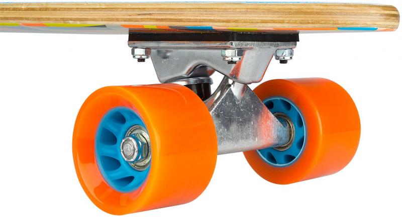 9-kihiline vahtrapuust laud värvilise pealmise libisemisvastase kattega, rattad PU, kodarad PP, rataste suurus 57 x 37 mm. ABEC 5 rattalaagrid. Mõõdud 57 x 16 x 11.50 cm. 3.5 inch heavy-duty aluminium trucks.