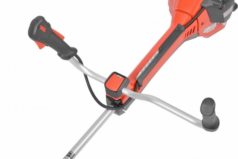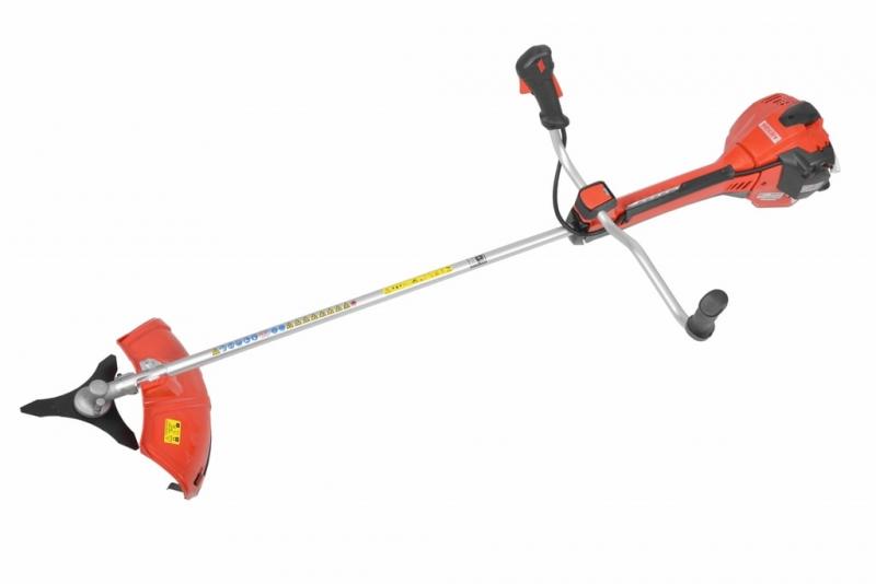 WALBRO karburaator. EASYSTART. Mootori töömaht: 52 cm3, 2-taktiline bensiinimootor, 2,6 HJ, võimsus 1,9 kW. Tera töölaius 25,5 cm, niidukaar 43 cm. Tamiiliga trimmipea, metallist kolmiknuga, reguleeritav kaksik-käepide. Komplektis trimmipea, kolmiknuga, kandetraksid. Kaal 8.7 kg.